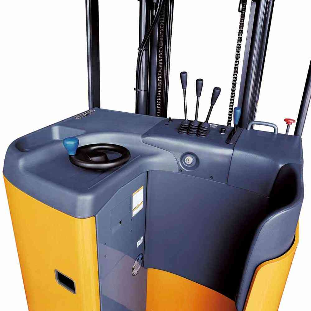 The Cat NRS30LCB stand-on reach truck is built to cope with demanding warehouse applications. These high performance reach trucks provide energy efficiency and greater power through a 48V motor, and contain an extensive range of standard features which deliver outstanding productivity and performance. They offer a wider chassis for extra stability with a lift capacity up to 3 tonnes, which are ideally suited for more demanding and heavy duty lifting applications.